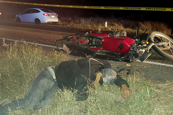 La noche del pasado jueves tres jóvenes se accidentaron en una motocicleta en la carretera Nueva Italia-Apatzingán, instante en que uno de ellos falleció al ser atropellado por un vehículo "fantasma", era estudiante del Colegio de Bachilleres, vecino del poblado La Batea, perteneciente a esta demarcación, de acuerdo con los datos obtenidos durante la labor periodística.