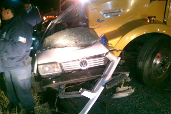 NOTICIAS 09/12/2015Vehículo de carga embiste a auto donde iba una familia 2 muertos y dos heridosUn vehículo de carga que terminó por darse a la fuga embistió a un coche en el que se trasladaba una familia, a consecuencia de ello una pareja de la tercera edad murió y hubo dos mujeres lesionadas.