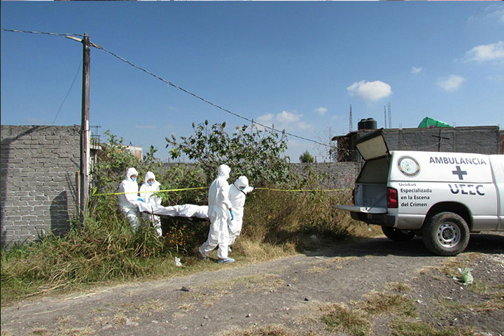 Un individuo que está sin identificar fue localizado con huellas de tortura, inmovilizado de pies y manos con cinta industrial, con plástico transparente y una sudadera de color blanco con azul envuelta en la cabeza y con un balazo en la nuca.