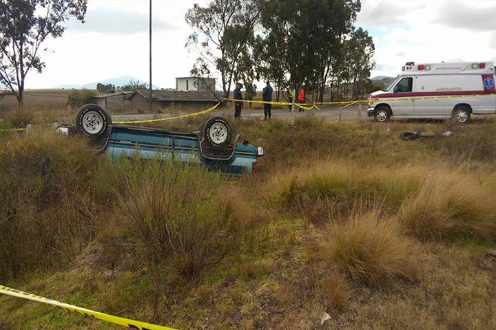 El ocupante de una camioneta, quien iba en la caja de la misma, perdió la vida aplastado al volcar dicha unidad, la cual fue abandonada por los demás pasajeros.
