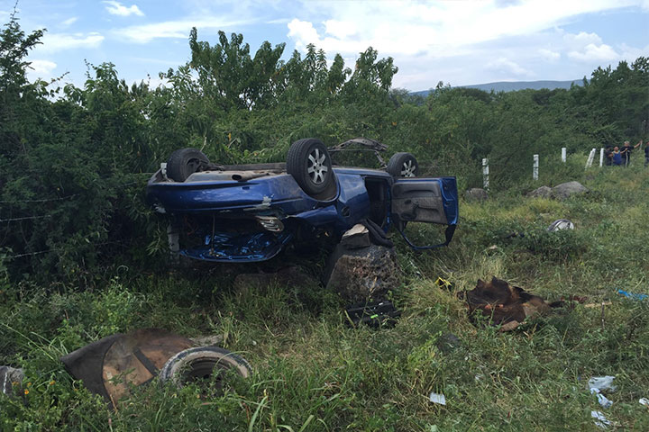 La volcadura de un automóvil que cayó a un barranco de aproximadamente diez metros de profundidad, dejó como saldo una mujer muerta y cuatro lesionados.