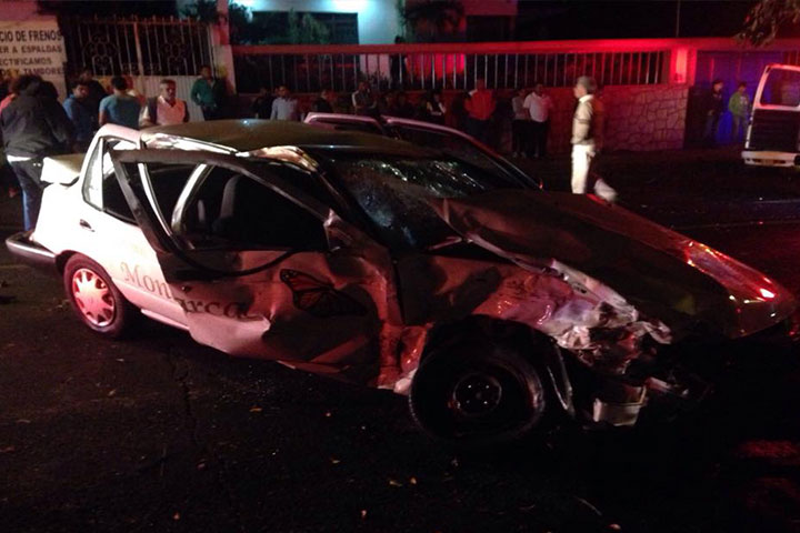 El siniestro vial fue durante la madrugada de este sábado en la esquina de la avenida Juárez y la calle 5 de Mayo, sitio donde colisionaron las dos unidades: una de ellas un taxi de la lÃnea Monarca y otra una camioneta.
