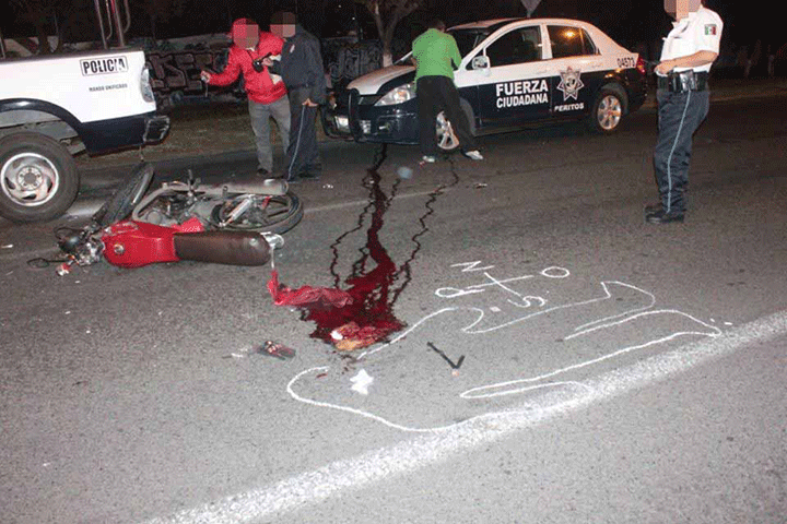 NOTICIAS 09/08/2015Choca contra patrulla y falleceUn motociclista falleció al momento de estrellarse contra la retaguardia de una patrulla de la Fuerza Ciudadana (FC) que, junto con peritos de vialidad, estaba a la orilla del Libramiento Sur, donde atendía un hecho de tránsito, justo a un costado de la Escuela Secundaria Federal número 2; la unidad oficial tenía los códigos encendidos precisamente para ser vista a distancia por los conductores.
