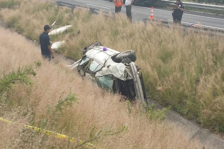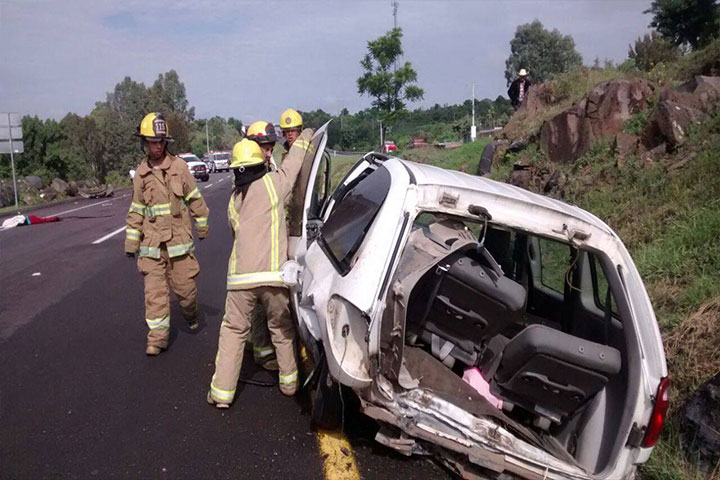 Un vehículo con placas del estado de Jalisco terminó volcado en el tramo carretero Cuitzeo-Zinapécuaro en este municipio, lo cual dejó como saldo un muerto y dos lesionadas, entre ellas una menor de edad, mismas que fueron hospitalizadas, de acuerdo con la información obtenida en el sitio del accidente.