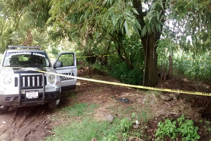 Un cadáver masculino fue descubierto dentro de un canal de riego localizado en un predio perteneciente a la Tenencia Morelos, cuerpo al que además se le apreció una soga amarrada a su cuello, la cual pendía de la rama de un árbol