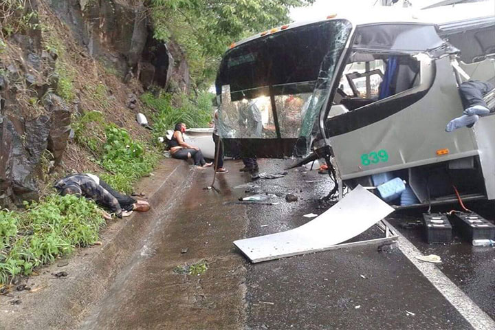 Al menos 7 muertos fue el resultado de un terrible accidente ocurrido hace unos la tarde de este martes en la autopista Tepic-San Blas, en donde chocaron de frente un autobús de pasajeros de la línea Pacífico y un tráiler, ello luego de que el camión de pasaje de la línea Pacifico-Koras, procedente de Ruiz, Nayarit, derrapara sobre la cinta asfáltica, esto a la altura del kilómetro 20, debido al pavimento mojado, pues azotaba en esos mo... Ver más...