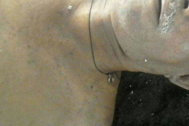 Completamente putrefacto estaba un cadáver masculino que además tenía huellas de tortura y las manos amarradas hacia la espalda con una venda. Su cara también estaba vendada, se supo por los datos obtenidos por esta redacción en el lugar de los hechos.