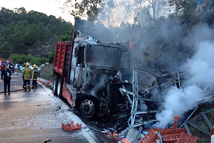 Un chofer de la empresa Bimbo murió calcinado en una carambola vehicular, donde estuvieron involucrados un automotor repartidor de dicha panificadora y dos camiones de carga.