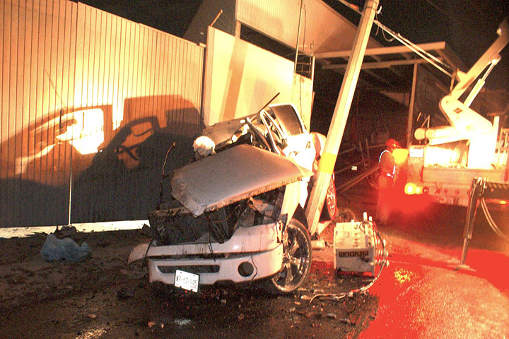 La noche del pasado martes se registró un aparatoso accidente vehicular en el que una camioneta se impactó contra un poste de concreto y una barda, arrojando un saldo fatal de una persona fallecida y una más gravemente lesionada.