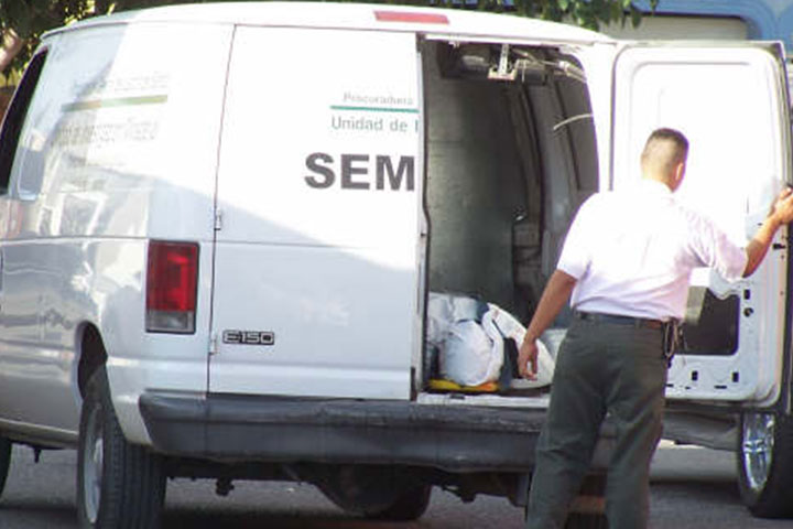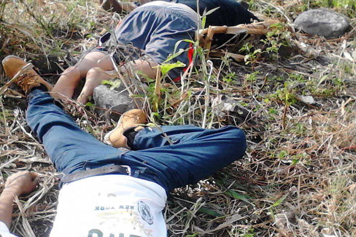 Cerca de una camioneta calcinada y junto a un canal de riego yacían tres cadáveres masculinos y uno femenino, a los cuatro se les apreciaba un balazo en la cabeza. Las autoridades policiales y militares acudieron al sitio de los hechos, el cual se ubica en el predio denominado Los Fresnos, perteneciente a este municipio.