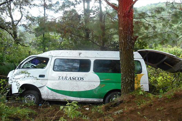 Un combiero falleció después de que perdiera el control de la unidad del transporte público que tripulaba y se estrellara de frente contra unos pinos en la carretera Zicuicho-Pamatácuaro, en este municipio de Los Reyes, informaron los servicios de auxilio.