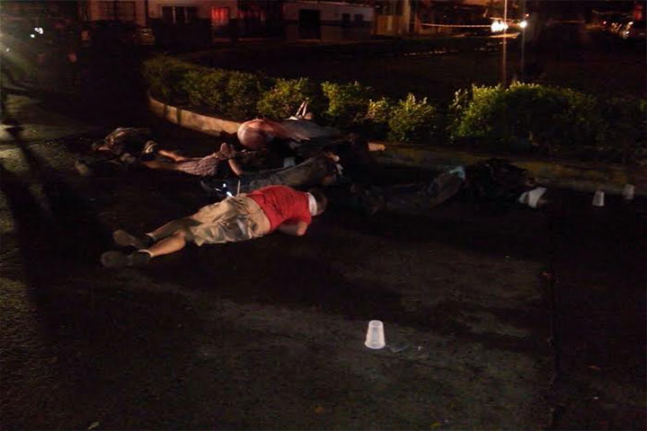 Seis personas del sexo masculino fueron ejecutados con pistolas .38 súper y rifles AK 47, en la glorieta ubicada en la avenida Manuel Pérez Coronado, a una cuadra del viaducto a Jicalán de esta ciudad, mientras que fue trasladado al hospital regional un sobreviviente del múltiple crimen.
