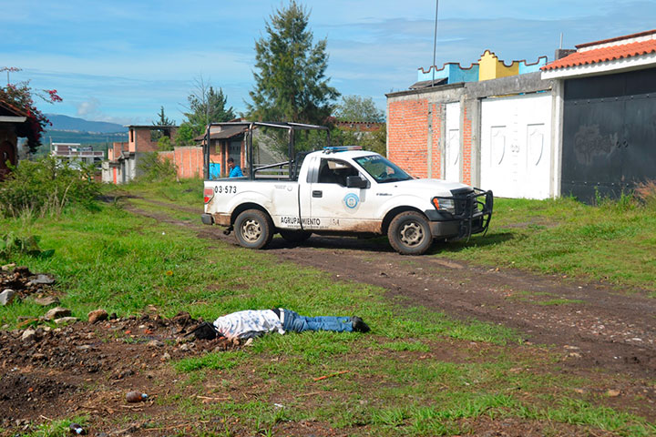 El cadáver de un hombre baleado fue encontrado en un rÃo de aguas negras, mismo que está ubicado en un camino de terracerÃa entre las localidades de CoÃntzio y San Juanito ItzÃcuaro, pertenecientes a este municipio, hasta donde se trasladó el personal de la SubprocuradurÃa Regional de Justicia para lo conducente.