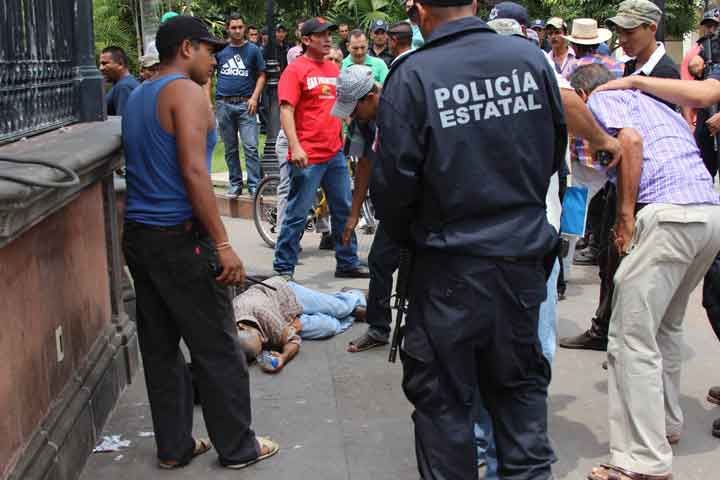 Con la finalidad de exigir la salida de este pueblo del ex presidente municipal Adalberto Frutus Comparán por supuestos actos de corrupción, el pueblo en general se agrupó gritando consignas pero uno de los Defensas Rural Estatal sacó de entre sus ropas una pistola calibre .38 súper y mató a uno de los manifestantes.
