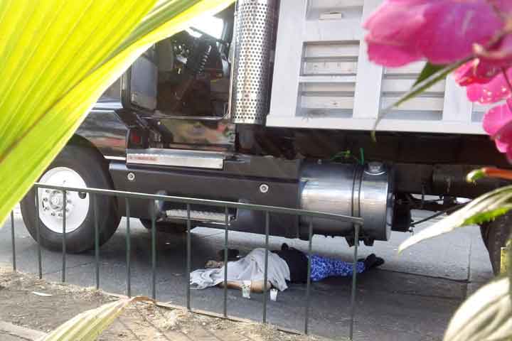Una pareja de septuagenarios que recién descendieron de un camión urbano e intentaban abordar un auto de alquiler, con la finalidad de dirigirse a una consulta médica al Seguro Social, fueron materialmente arrollados por camión tipo volteo; el señor logró esquivar a la pesada unidad, no así su esposa, quien murió de inmediato tras pasarle por el rosto un neumático. El chofer huyó.