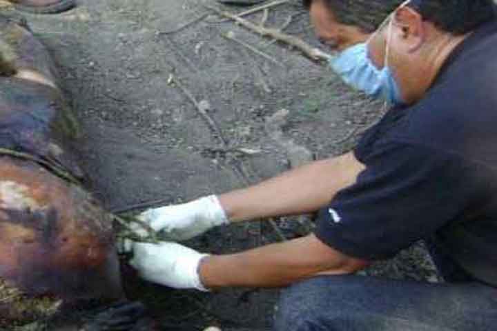 En completo estado de putrefacción fue descubierto el cuerpo de un hombre desconocido que yacía sobre el margen del río denominado "Apatzingán", a la altura del sitio Ampliación El Higueral, justo a un costado de los corrales "Chelón".