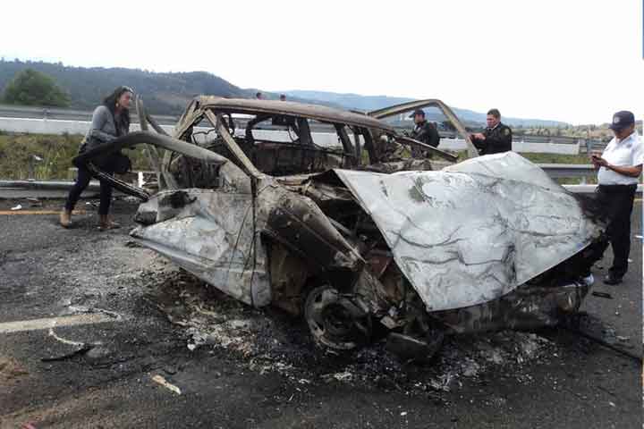 Tres habitantes de Cuernavaca, Morelos sufrieron una fatal volcadura en la Autopista de Occidente, en esta municipalidad, tras lo cual el automotor donde viajaban se incendió por completo, con saldo de un muerto y dos lesionados.