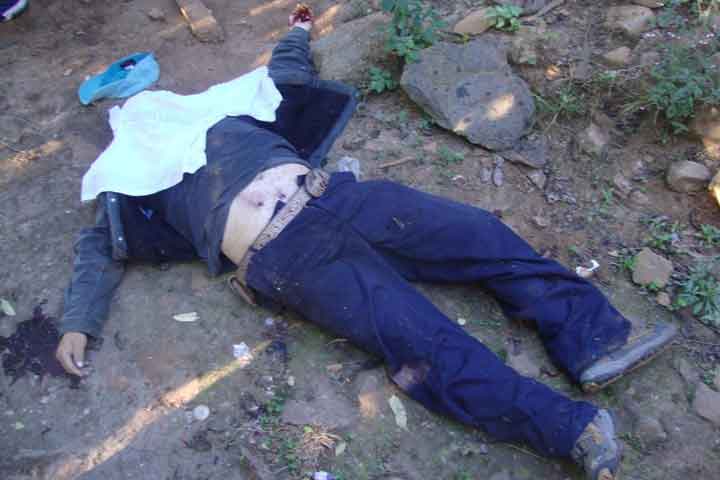 Un campesino fue ultimado a escopetazos en la cabeza y el tórax cuando trabajaba en la ranchería denominada Agua de la Piedra, perteneciente a este municipio, sin que se conozca el móvil del crimen y la identidad del presunto responsable; el cuerpo fue localizado por uno de sus hermanos.