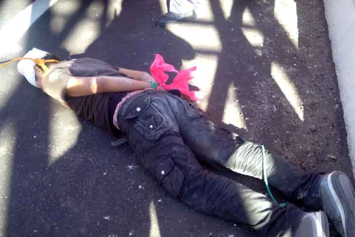 NOTICIAS 09/01/2014En un puente, dejan colgado a hombre en La HuacanaEl cuerpo maniatado de un hombre desconocido que tenía envuelta la cabeza con una venda, fue colgado con una soga de la estructura de un puente, sobre la autopista Cuatro Caminos-Lázaro Cárdenas, poco antes de llegar al poblado de San Pedro Barajas, perteneciente a este municipio de La Huacana.