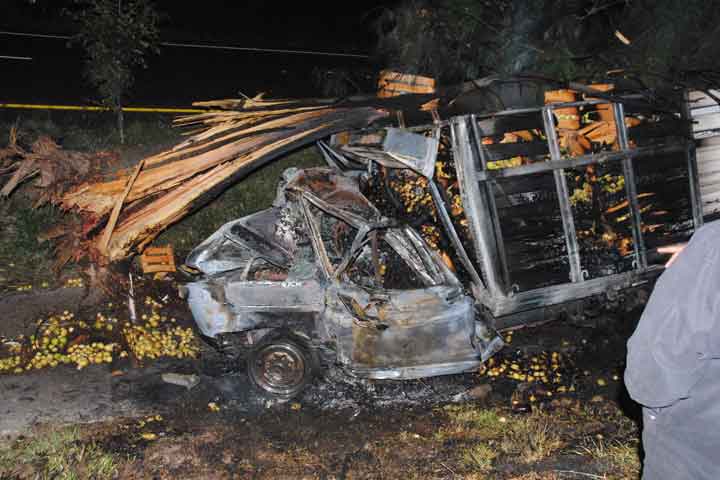 Un choque frontal entre dos automóviles dejó como saldo cuatro personas fallecidas calcinadas sobre la autopista México-Guadalajara, exactamente en el kilómetro 241+100, a la altura de esta municipalidad. En el lugar trascendió que uno de los vehículos era perseguido por agentes federales y en su intento de huida se metió en sentido contrario provocando la tragedia.