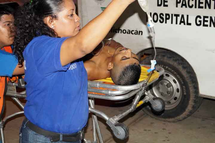 Una persona de quien hasta el momento se desconoce su identidad, recibió tres impactos de bala de grueso calibre, dos de ellos en la cabeza y otro en el tórax; mal herido, fue llevado en una ambulancia a un hospital de la ciudad de Uruapan, donde más tarde pereció.