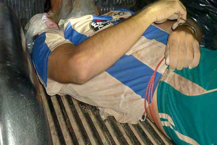 El victimado es Eleuterio Pérez Rubio, de 40 años de edad, quien estaba en el asiento del chofer de un vehículo marca Nissan, pick up, color verde agua, con placas de esta entidad federativa.