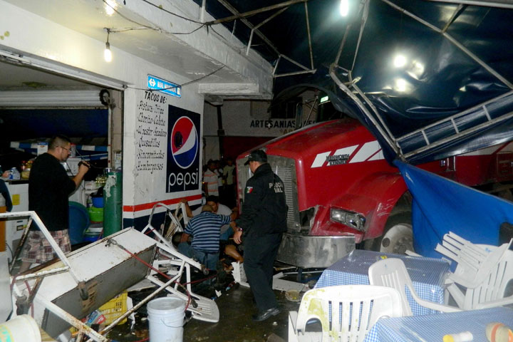 NOTICIAS 28/07/2013Tráiler se zafa de una grúa, embiste y prensa a taqueros