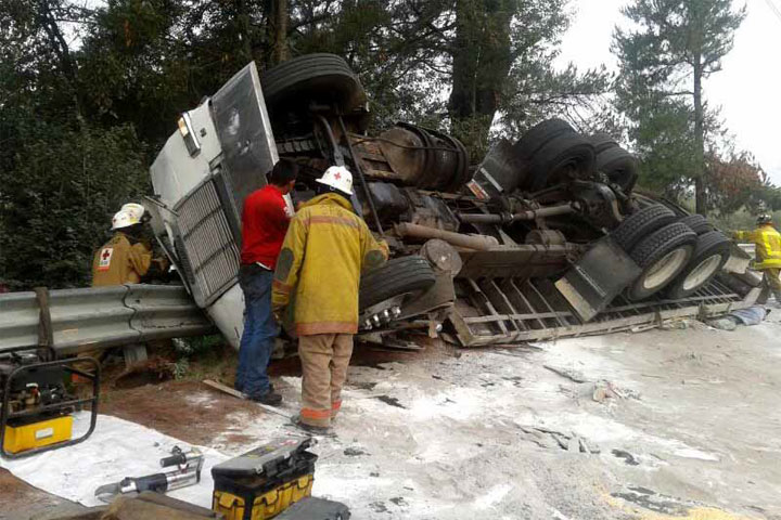 La mañana de este martes un camión que transportaba pegazulejo volcó cerca de la desviación a Los Reyes, en la carreta Uruapan - Paracho, en esta demarcación, tras lo cual su chofer falleció, mientras que el copiloto resultó herido.