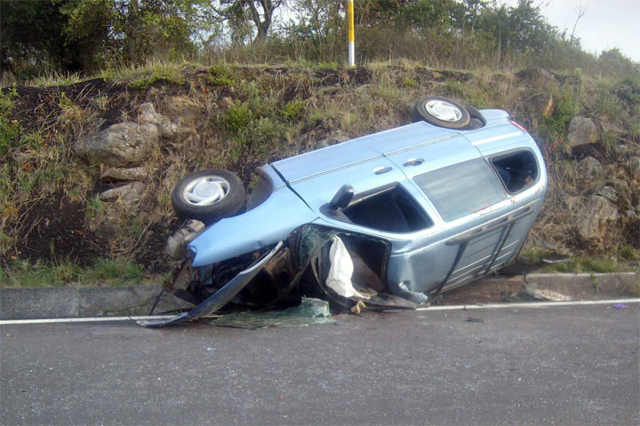Múltiples fracturas padeció un conductor al quedar prensado y muerto en el interior de su vehículo, el cual estrelló contra el paredón ubicado a la orilla de la rúa libre Uruapan - Gabriel Zamora.