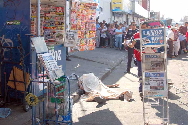 El cadáver completamente desnudo de un hombre, fue hallado por vecinos del predio La Joya, en la Tenencia de Los Ángeles, del municipio de Peribán. La víctima tenía una lesión de bala entre el glúteo izquierdo y la cadera.