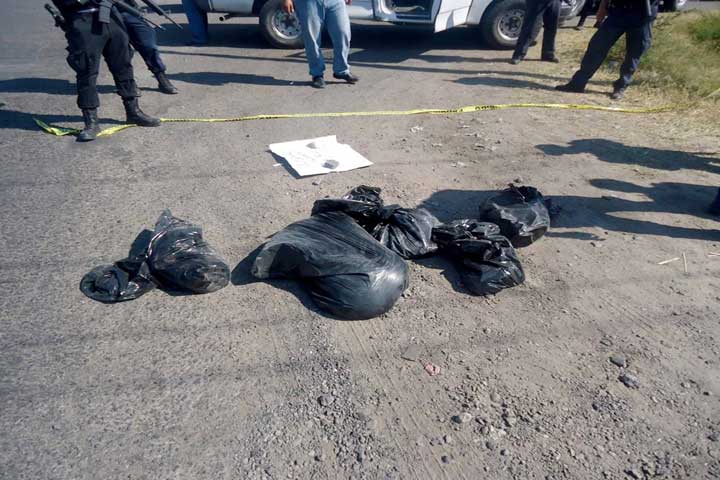 Desmembrado, empaquetado en bolsas negras plásticas y con un mensaje colocado por su o sus asesinos, fue hallado el cuerpo de un presunto prófugo desconocido que yacía sobre el tramo carretero Sahuayo Vista Hermosa.