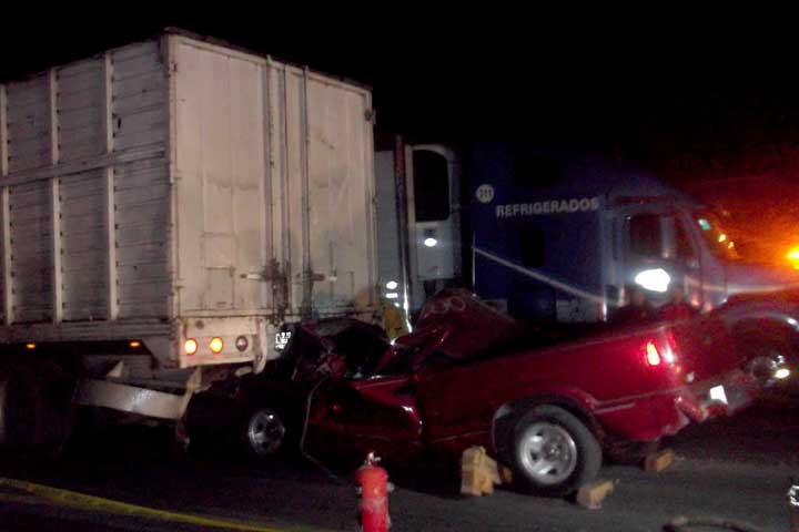 La noche del pasado jueves un hombre falleció al quedar prensado al interior de una camioneta en la que viajaba como copiloto, luego de que se impactaran contra un camión de carga, cabe mencionar que ambos conductores se dieron a la fuga abandonando el cadáver y las unidades en las inmediaciones del poblado de San Lorenzo.
