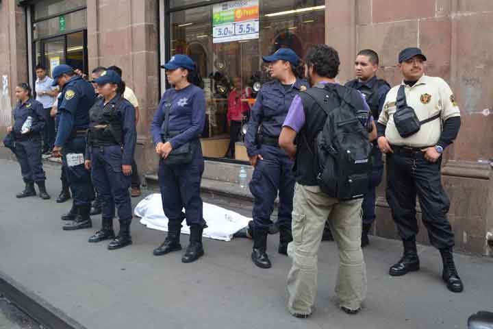 Debido a un aparente paro cardiorespiratorio, cayó fulminado un anciano y su cadáver quedó al exterior de la tienda Coppel, localizada en el Centro Histórico de Morelia.