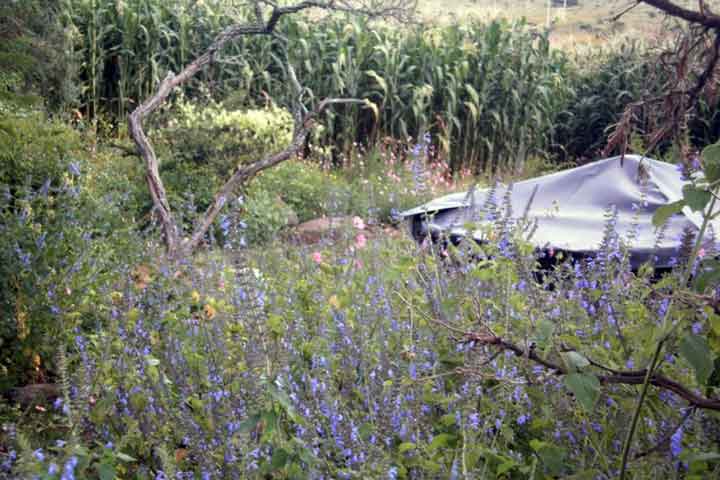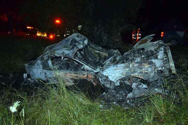 Parte del cadáver de un muchacho sufrió severas quemaduras, después de que su vehículo volcó y se incinero completamente a un costado del camino asfaltico que conduce al poblado de San Lucas Pío.