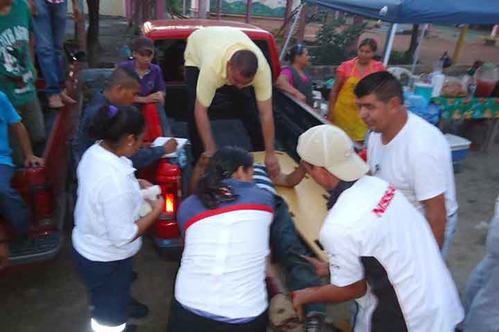 El hecho se registro a las 22:00 horas del pasado viernes, en la plaza taurina "Alberto Balderas", de Huetamo, donde se realizaba el evento de recaudación de fondos para financiar la "Carrera Guadalupana".