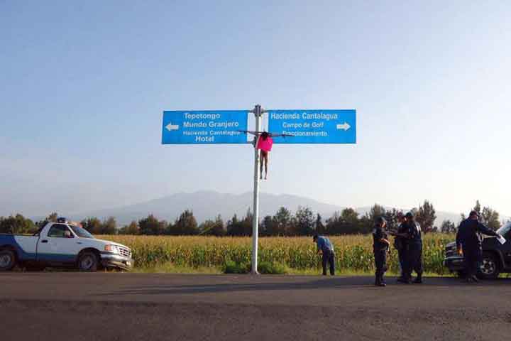 NOTICIAS 07/09/2012Asesinan y Crucifican a presunto violadorUn sujeto acusado de ultrajar a una mujer fue torturado y crucificado en un señalamiento vial de un crucero de esta población, en el que los homicidas le dejaron una cartulina clavada con dos picahielos en el pecho, con una advertencia a los violadores y "dedos" y traidores.