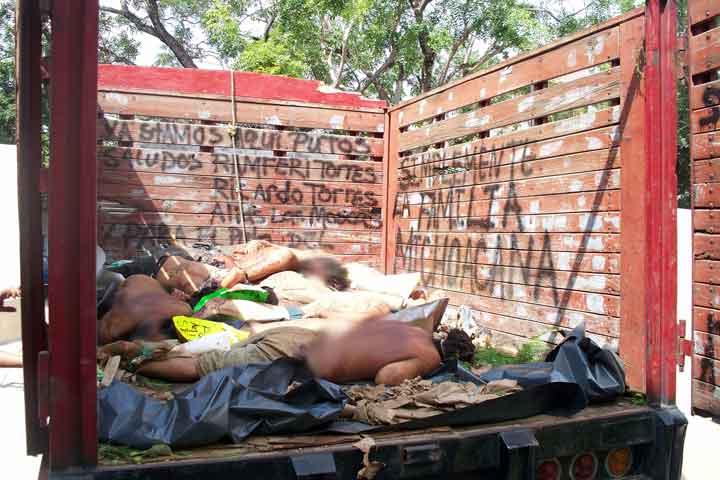 NOTICIAS 10/09/2012Encuentran 16 cadáveres en Coyuca de Catalán Gro.Los cadáveres de 16 sujetos, a quienes torturaron y ejecutaron de un balazo en la cabeza, fueron localizados por la Policía en la caja de una camioneta tipo redilas, en la colonia centro de esta población.
