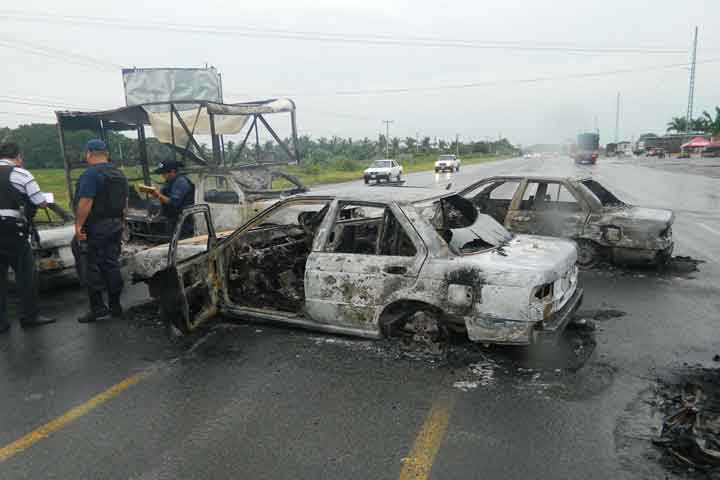 Una serie de enfrentamientos a balazos entre elementos de fuerzas federales y supuestos delincuentes, desencadenó en la quema de varios vehículos particulares, de transporte y patrullas de la Policía federal así como el bloqueo de diversos punt... Ver más...
