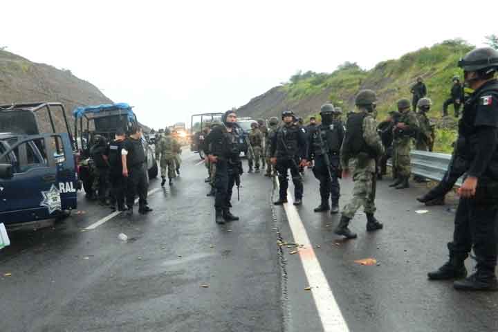 Una serie de enfrentamientos a balazos entre elementos de fuerzas federales y supuestos delincuentes, desencadenó en la quema de varios vehículos y el bloqueo de diversos puntos carreteros en Apatzingán y localidades vecinas.