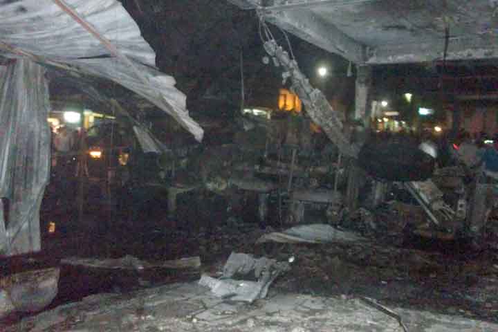 Dos hombres calcinados y tres heridos, dejaron el accidente de un tráiler, el cual chocó contra un taxi, perdió el control y se estrelló contra un poste de luz, para finalmente volcar y caer sobre varios puestos de comida donde se incendió; las autoridades policiales informaron que todas las víctimas iban a bordo del tractocamión.
