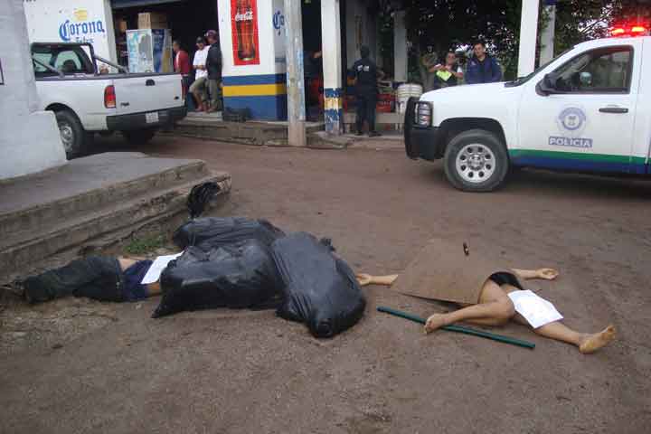 NOTICIAS 23/06/2012Hallan cinco descuartizados en BuenavistaLos cuerpos de cinco personas, tres hombres, uno mutilado de un brazo, y dos mujeres, una de ellas decapitada y con seis meses de embarazo, fueron asesinados con el tiro de gracia y tirados en bolsas negras en el puente Piedra Blancas, en Buenavista la mañana de este sábado.