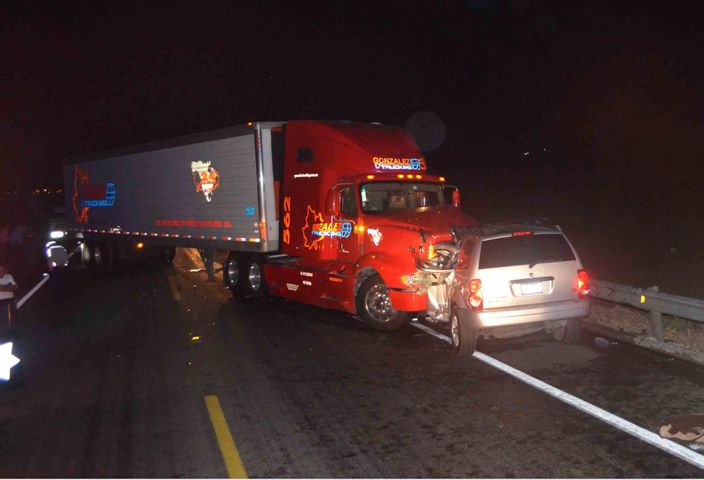 NOTICIAS 20/05/2012Encontronazo deja 3 muertos y un herido Una familia de cuatro personas que viajaba rumbo a la ciudad de Morelia, sufrió un aparatoso accidente automovilístico al chocar de frente contra un tráiler, lo cual dejó tres muertos, entre ellos un menor de edad y una mujer gravemente lesionada.