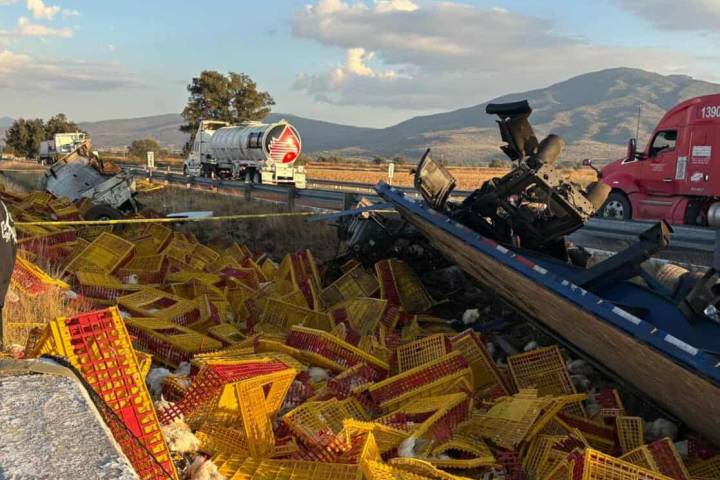 NOTICIAS 06/12/2025Accidente de tractocamión pollero deja un muerto en la México-GuadalajaraUn tractocamión que transportaba pollos se accidentó sobre la autopista México-Guadalajara, a la altura del kilómetro 367, informaron autoridades policiales, las cuales agregaron que el chofer de la unidad perdió la vida.
