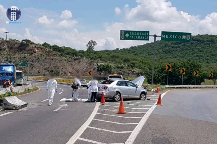 María Mayra Violeta Velazco García, síndico de Tonalá, Jalisco, perdió la vida y tres de sus acompañantes quedaron heridos cuando el vehículo en el que viajaban chocó contra un bloque del muro de contención central ubicado en la carretera Morelia-Salamanca, a la altura del entronque con la Autopista de Occidente.