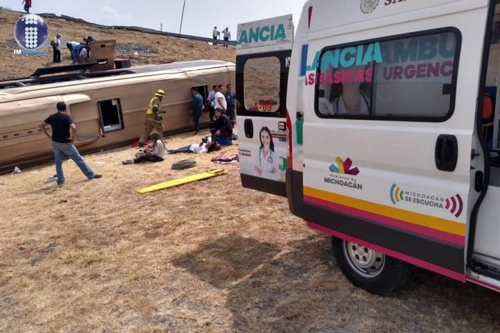 La mañana de este lunes se registró la volcadura de un autobús de pasajeros sobre la Autopista de Occidente, justo en el entronque con la carretera Morelia-Salamanca, percance en el que una mujer murió y 27 personas quedaron malheridas, una de las cuales también falleció cuando era atendida en un nosocomio particular, ubicado en la ciudad de Morelia, de acuerdo con la información conseguida en la cobertura de la noticia.