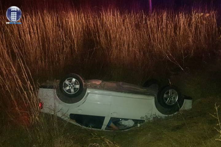 El percance fue a la altura de esta demarcación de Chavinda. La unidad siniestrada es una de la marca GMC, de color blanco, la cual dio varias volteretas y terminó totalmente dañada.