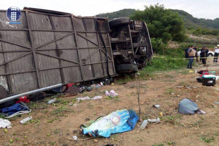 NOTICIAS 28/07/2018Volcadura de autobús en Nayarit causa cuatro muertesUn camión de pasajeros, el cual se dirigía de Puerto Vallarta a Ciudad Guzmán, se volcó al tomar a una curva en la autopista Jala - Compostela, a la altura del kilómetro 45+00, lo cual dejó al menos cuatro muertos y 22 heridos.