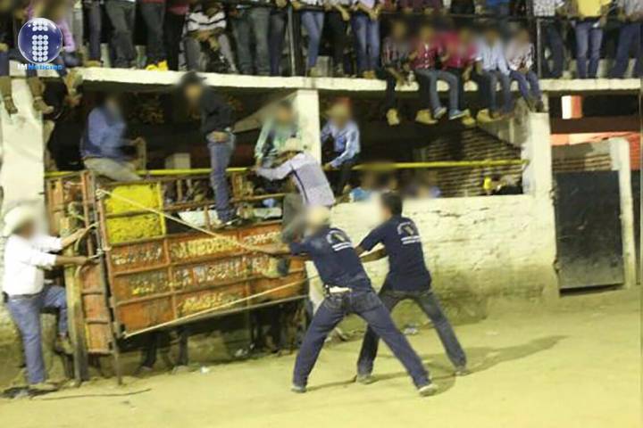 El incidente tuvo lugar en la plaza de toros municipal, donde el infortunado, un joven del que solamente se sabe es procedente del municipio de Salvador Escalante, subió al toro en turno.