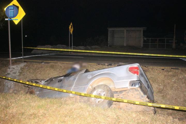 Un muerto y un herido fue el resultado de la caída de una camioneta a la cuneta que divide los carriles de la carretera Morelia-Pátzcuaro, lugar donde dicho vehículo acabó parcialmente volcado.