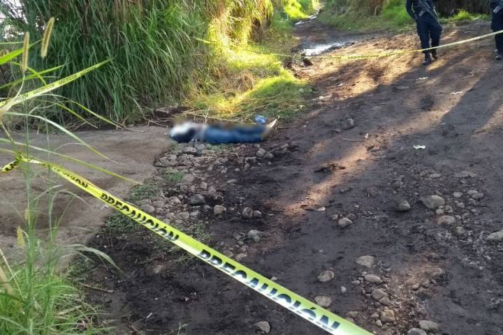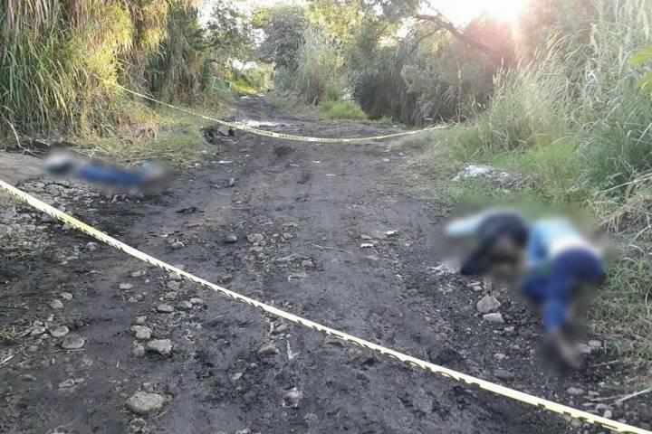 sobre un camino de terracería los cuerpos sin vida de dos mujeres y un hombre.
